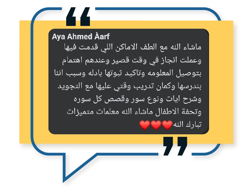 بعد الإنتهاء من الحلقة مباشرة يظهر للطالب تقرير خاص به يضم ( مستواه داخل الحلقة - تقديره في الحفظ الجديد والمراجعة - المطلوب منه تحضيره للحلقة القادمة من حفظ جديد وماضي - الواجبات الخاصة به )